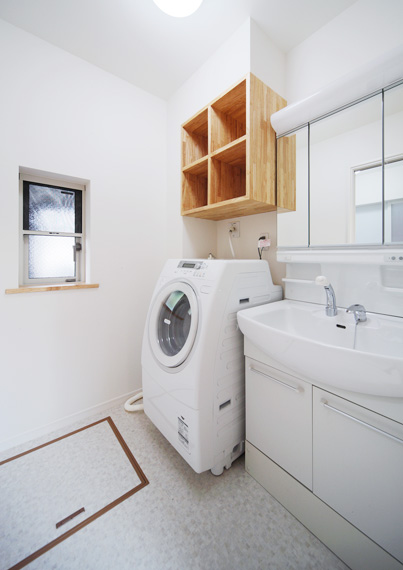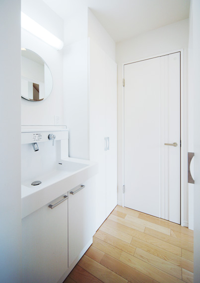 あえて仕切らずに、 使い易さと家族のコミュニケーションを大切にした洗面コーナーです。