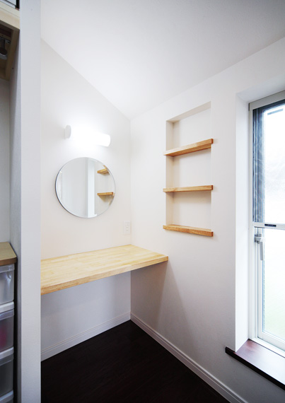 寝室のウォーキングクローゼットの中に、奥様のドレッサーコーナーを設けました。