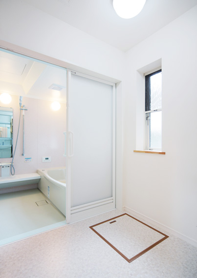 男性が入浴したり脱衣したりしている時、 女性が洗濯をしても導線が干渉しないように設計されています。